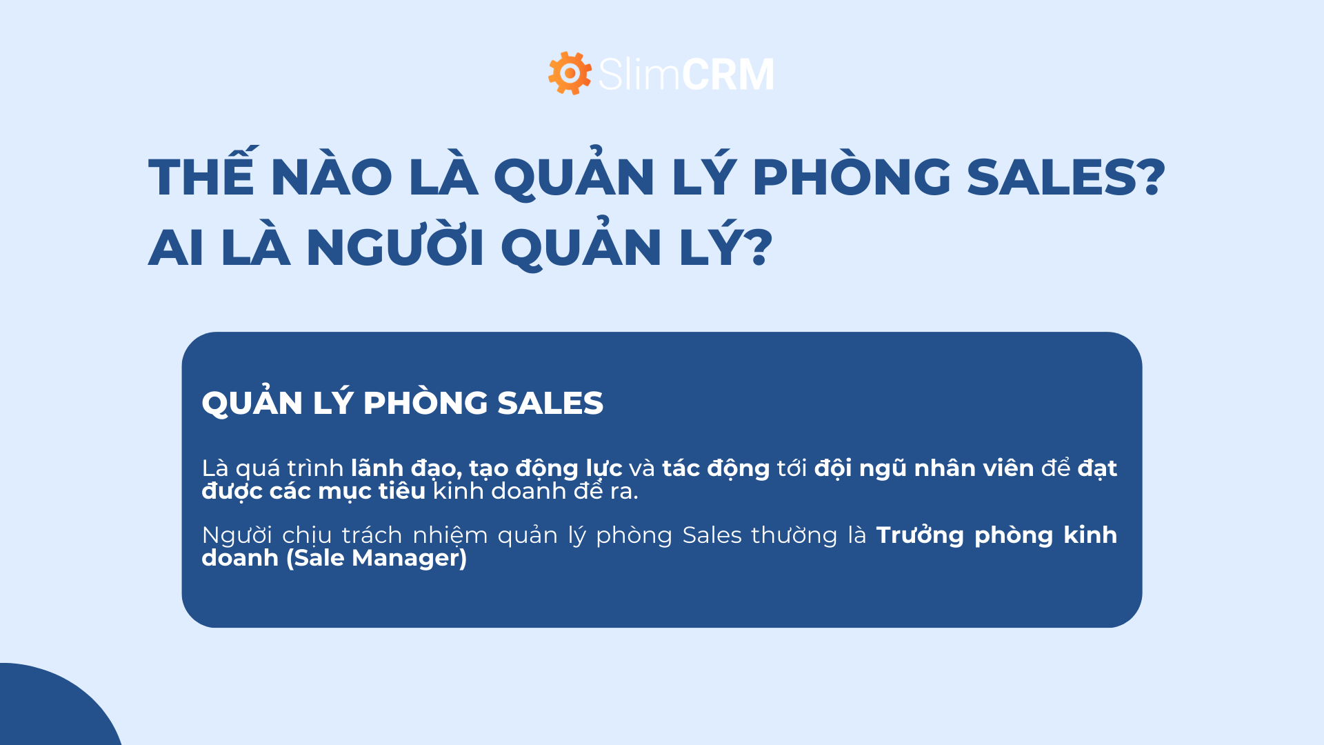 Trong doanh nghiệp, người có trách nhiệm quản lý phòng Sales thường là Trưởng phòng kinh doanh (hay Sale Manager).