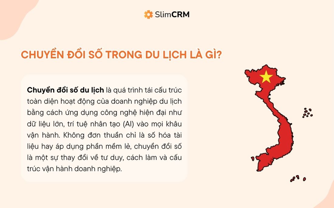 Chuyển đổi số du lịch là quá trình tái cấu trúc toàn diện hoạt động của doanh nghiệp du lịch bằng cách ứng dụng công nghệ hiện đại vào mọi khâu vận hành. Không đơn thuần chỉ là số hóa tài liệu hay áp dụng phần mềm lẻ, chuyển đổi số là một sự thay đổi về tư duy, cách làm và cấu trúc vận hành doanh nghiệp.