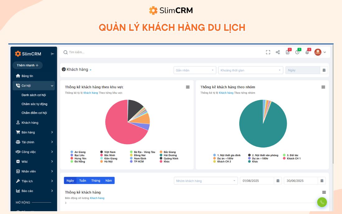 Không chỉ dừng lại ở CRM, SlimCRM còn hỗ trợ tích hợp AI, phân tích dữ liệu hành vi khách hàng và đồng bộ hóa với các nền tảng khác, mang lại một hệ thống quản trị toàn diện phù hợp với đặc thù ngành du lịch.