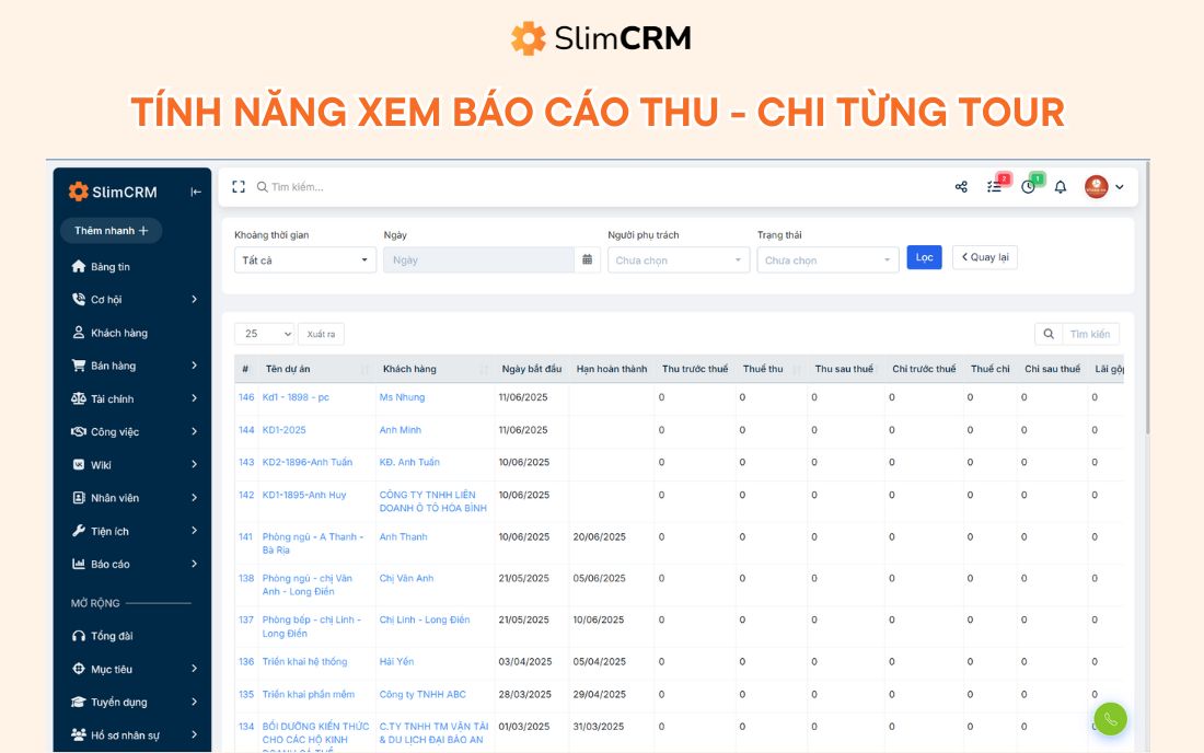 Trong khi nhiều doanh nghiệp còn loay hoay với bài toán chuyển đổi số, thì một số đơn vị tiên phong đã và đang tìm được hướng đi hiệu quả nhờ lựa chọn đúng giải pháp – trong đó có SlimCRM, nền tảng quản trị toàn diện được thiết kế riêng cho doanh nghiệp Việt, đặc biệt là nhóm ngành dịch vụ và du lịch. Không chỉ dừng lại ở việc số hóa thông tin, SlimCRM giúp doanh nghiệp tiến xa hơn: chuyển đổi phương thức vận hành, nâng cao hiệu suất làm việc và mở rộng trải nghiệm khách hàng trong môi trường số.