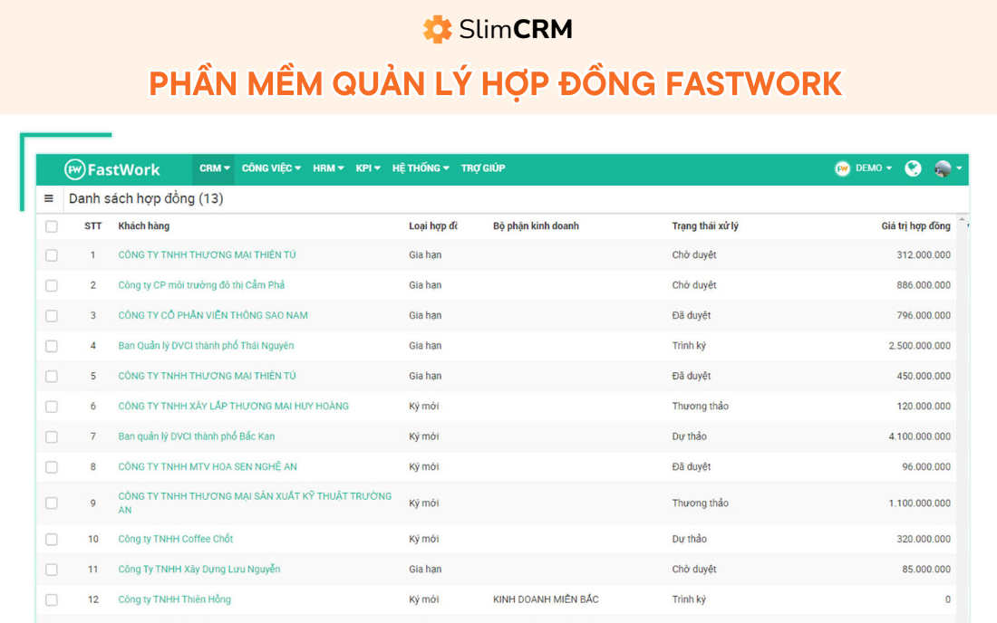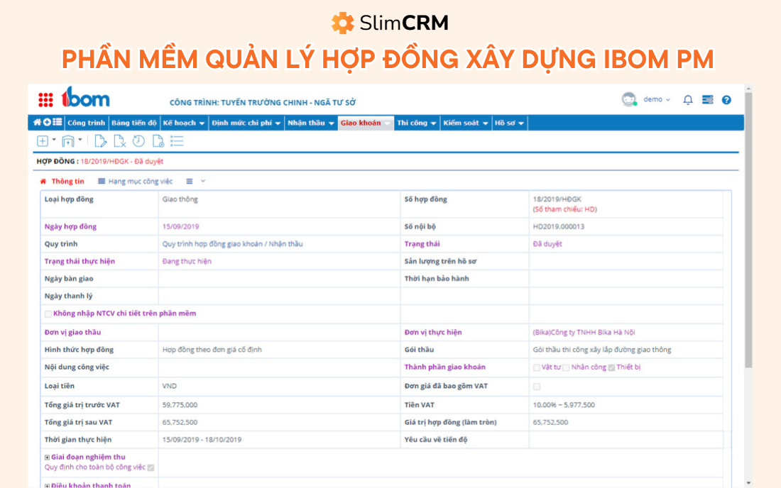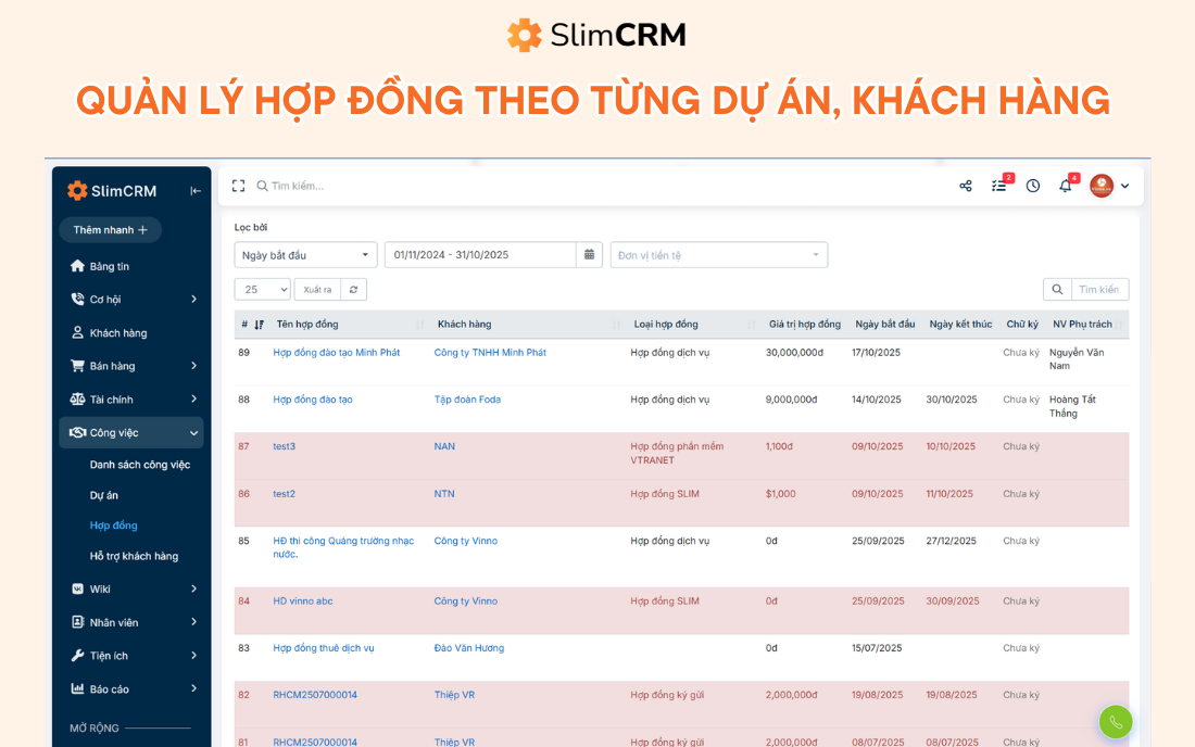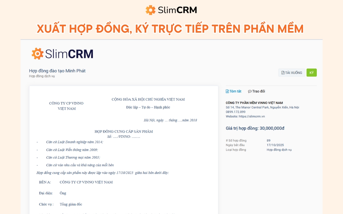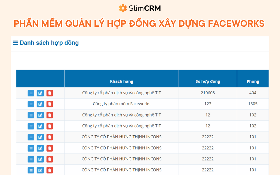 1. SlimCRM (Phần mềm quản lý hợp đồng xây dựng tổng thể)