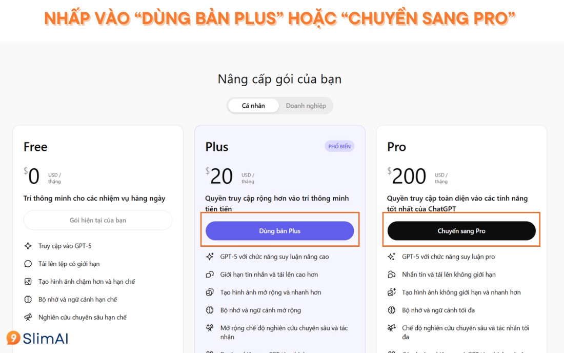 - Tại giao diện hiển thị, hãy chọn gói phù hợp với nhu cầu của bạn bằng cách nhấp vào “Dùng bản Plus” hoặc “Chuyển sang Pro”.